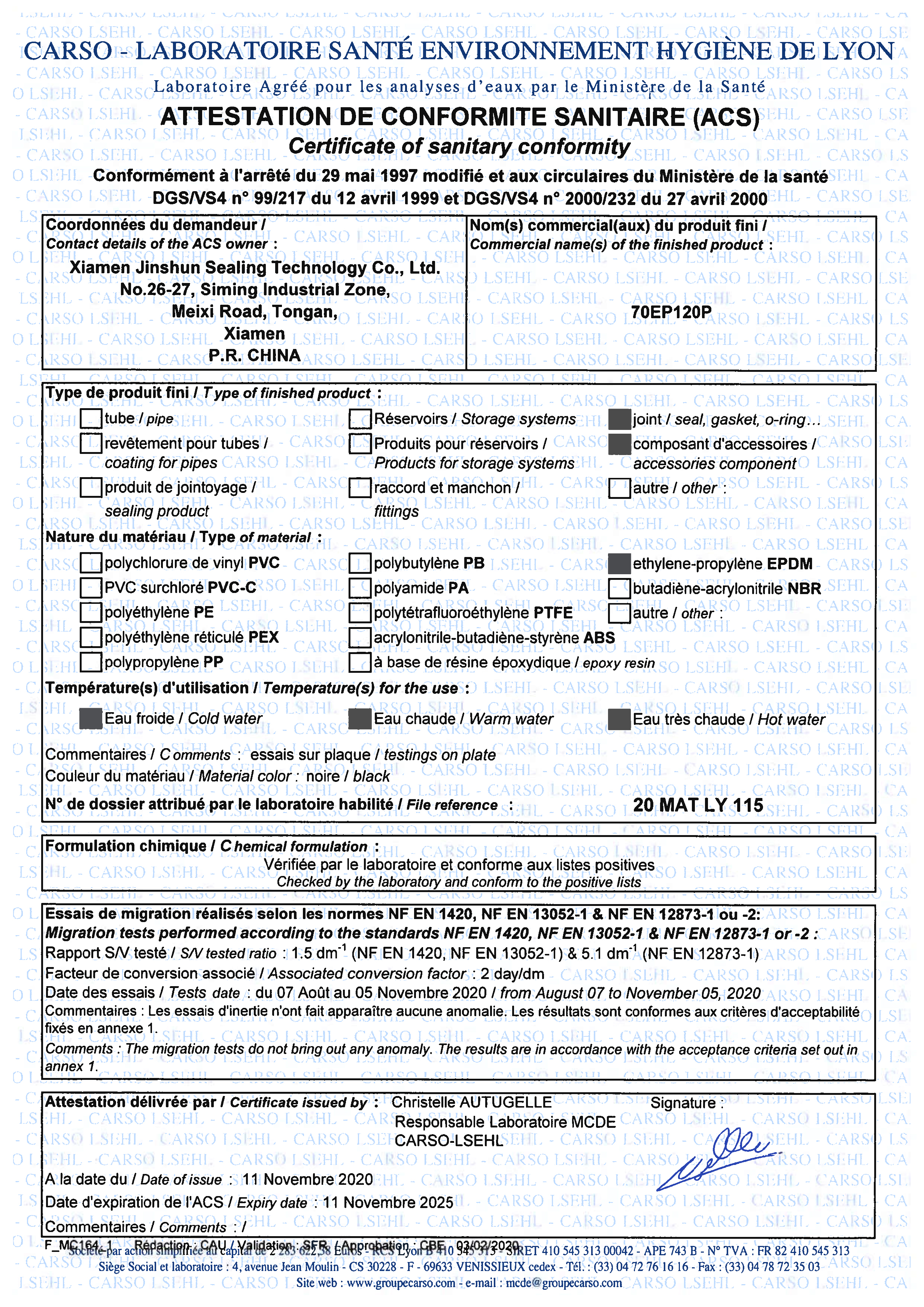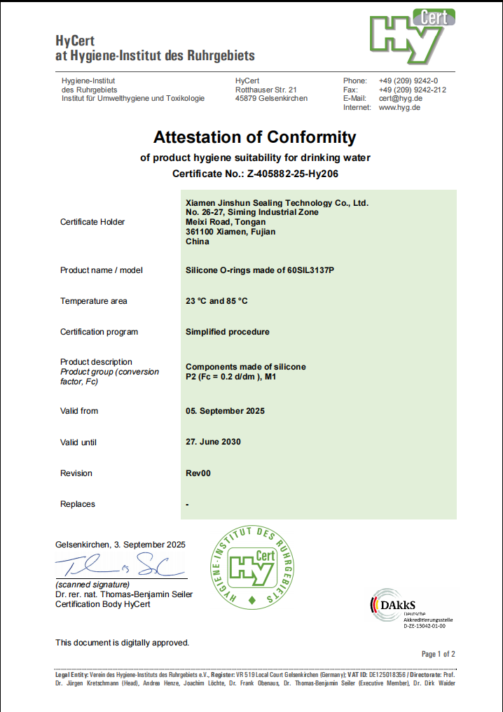 KTW-BWGL NBR KTW-BWGL SILICONE WRAS-EPDM NSF-61